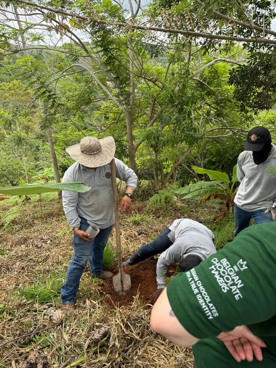 We also favor short circuits wherever possible: all of our chocolates are packaged locally in Brussels, in our own shops, to reduce unnecessary transport and strengthen the local economy. At the same time, by paying higher-than-market prices directly to our farmers, we help them continue to cultivate cacao in agroforestry systems that protect biodiversity, capture carbon, and enrich the soil; a natural ally in the fight against climate change.