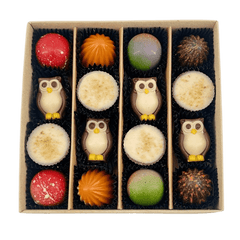 Entdecken Sie unsere herbstliche Pralinenschachtel mit 16 handgefertigten belgischen Pralinen in einer eleganten braunen Geschenkbox. Perfekt für saisonale Geschenke oder Verwöhnung.