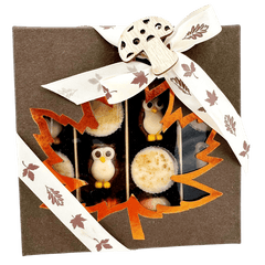 Herbstliche Pralinenmischung in einer dunkelbraunen Geschenkbox