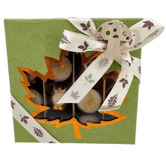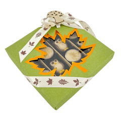Herbstliche Pralinenmischung im grünen Geschenkkarton