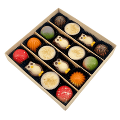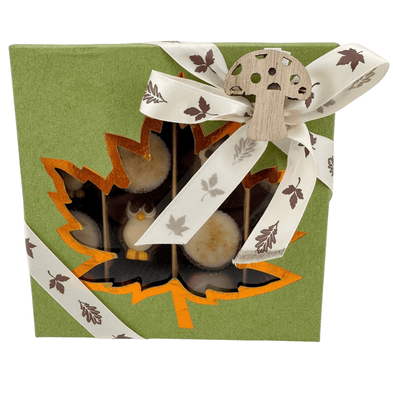 Entdecken Sie unsere herbstliche Pralinenschachtel mit 16 handgefertigten belgischen Pralinen in einer eleganten grünen Geschenkbox. Perfekt für saisonale Geschenke oder Verwöhnung.