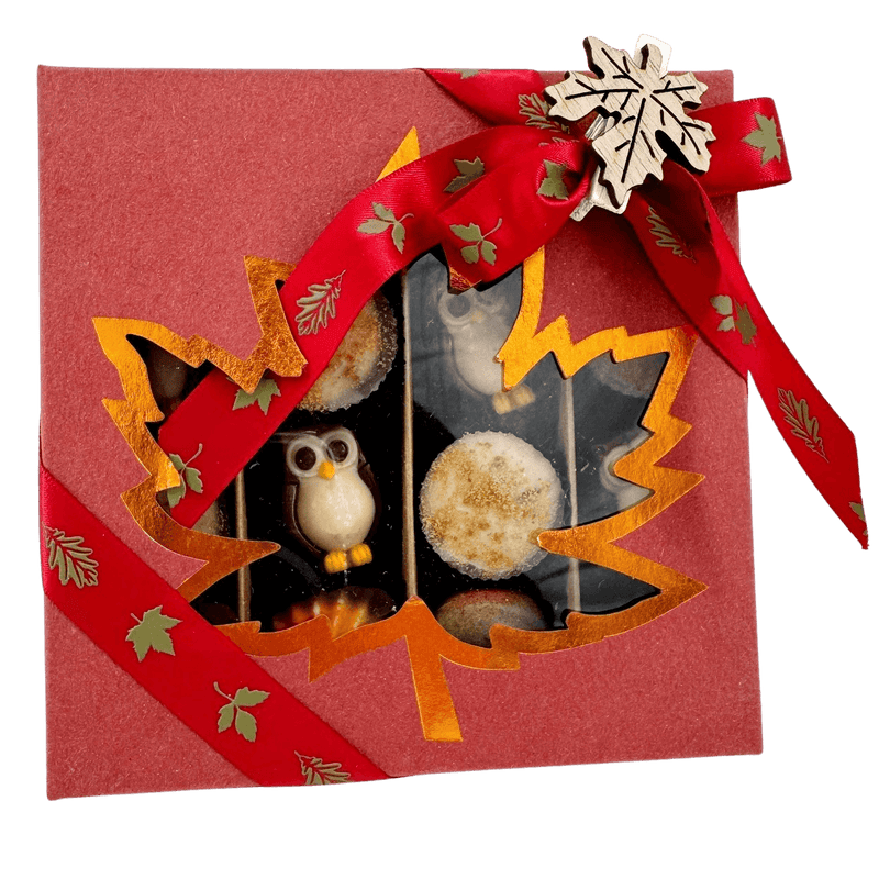 Entdecken Sie unsere herbstliche Pralinenschachtel mit 16 handgefertigten belgischen Pralinen in einer eleganten roten Geschenkbox. Perfekt für saisonale Geschenke oder Verwöhnung.