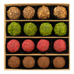 Genießen Sie unsere Mischung aus herbstlichen belgischen Trüffeln in einer handwerklichen Geschenkbox. Handgefertigt in Brüssel, kombiniert dieses saisonale Sortiment reichen Kakao mit Gourmet-Aromen, ein elegantes Geschenk oder Verwöhnung.