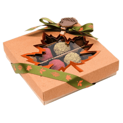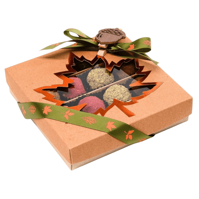 Herbstliche belgische Trüffelmischung in einer handwerklichen Geschenkbox