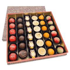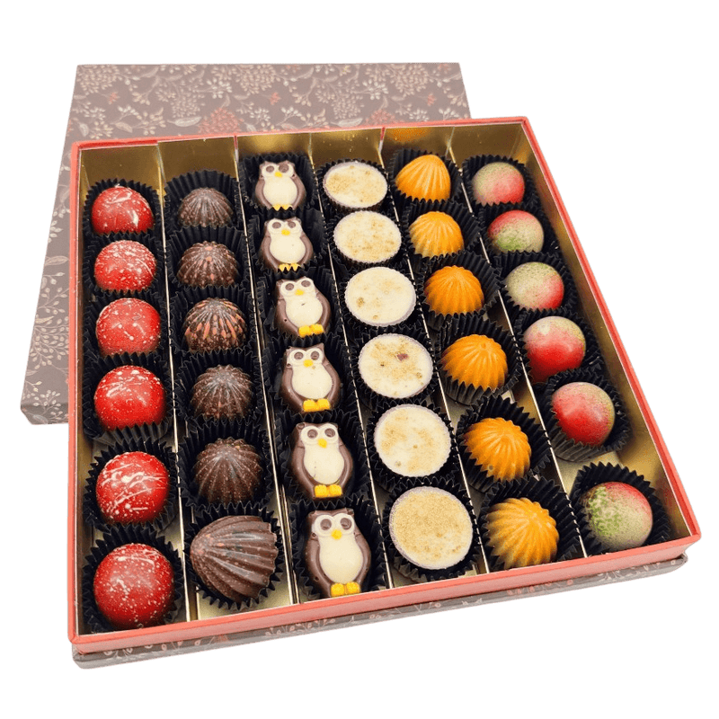 Genießen Sie unsere Autumn Whispers Pralinen 540g, handgefertigt in belgischer Schokolade. Eine saisonale Gourmet-Auswahl, perfekt zum Verschenken oder gemütlichen Verwöhnen.