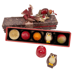 Genießen Sie unsere Autumn Whispers Pralinen 65g, handgefertigt in belgischer Schokolade. Eine saisonale Gourmet-Auswahl, perfekt zum Verschenken oder zum gemütlichen Genießen.