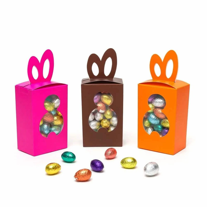Genießen Sie Ostern mit einer festlichen Tüte mit 20 belgischen Schokoladeneiern und einem süßen Schokoladenhasen. Handgemacht in Brüssel mit ethischem Kakao, perfekt zum Verschenken oder Teilen