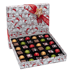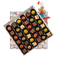 Feiern Sie die Feiertage mit unserer Weihnachtsbox mit 36 belgischen Pralinen, einer eleganten Auswahl an handgefertigten Pralinen aus erstklassigem Kakao, die sich perfekt zum Verschenken oder für süße, festliche Momente mit Ihren Lieben eignen.
