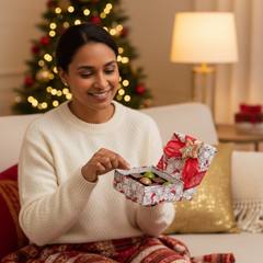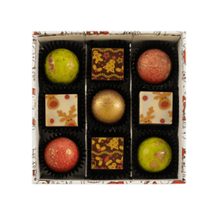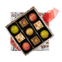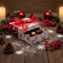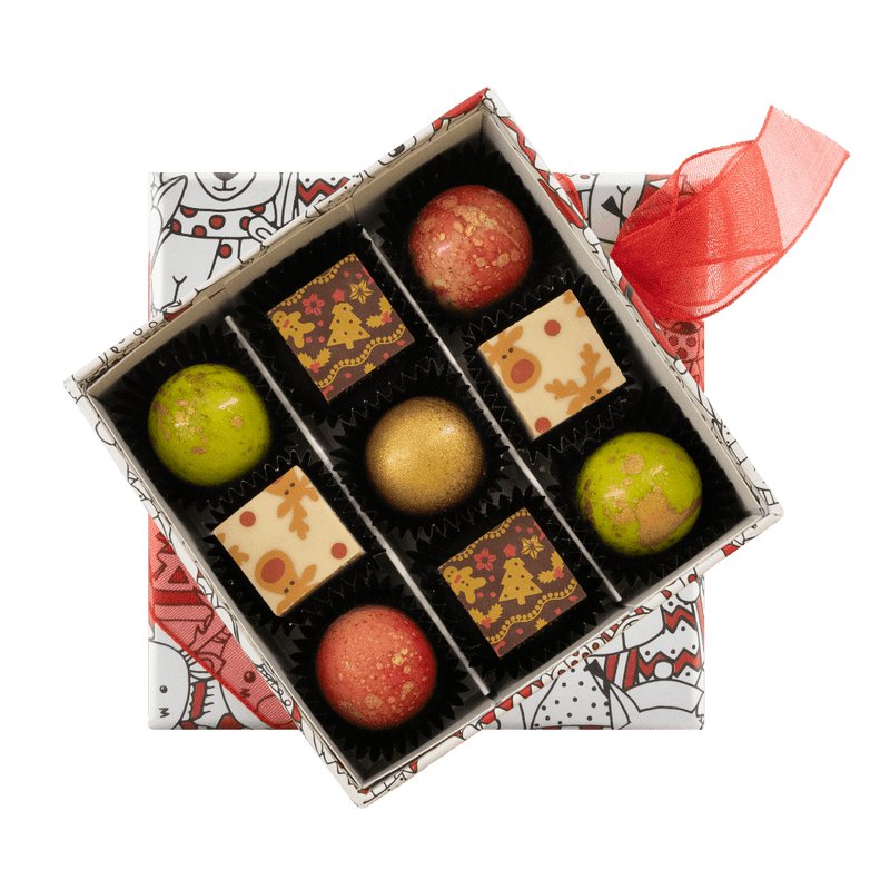 Feiern Sie die Feiertage mit unserer Weihnachtsschachtel mit 9 belgischen Pralinen, einer eleganten Auswahl an handgefertigten Pralinen aus erstklassigem Kakao, die sich perfekt zum Verschenken oder für süße, festliche Momente mit Ihren Lieben eignen.