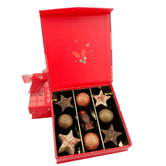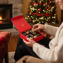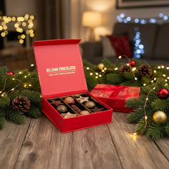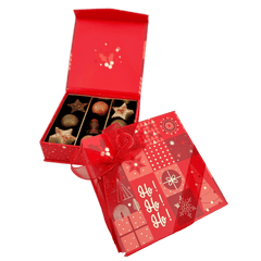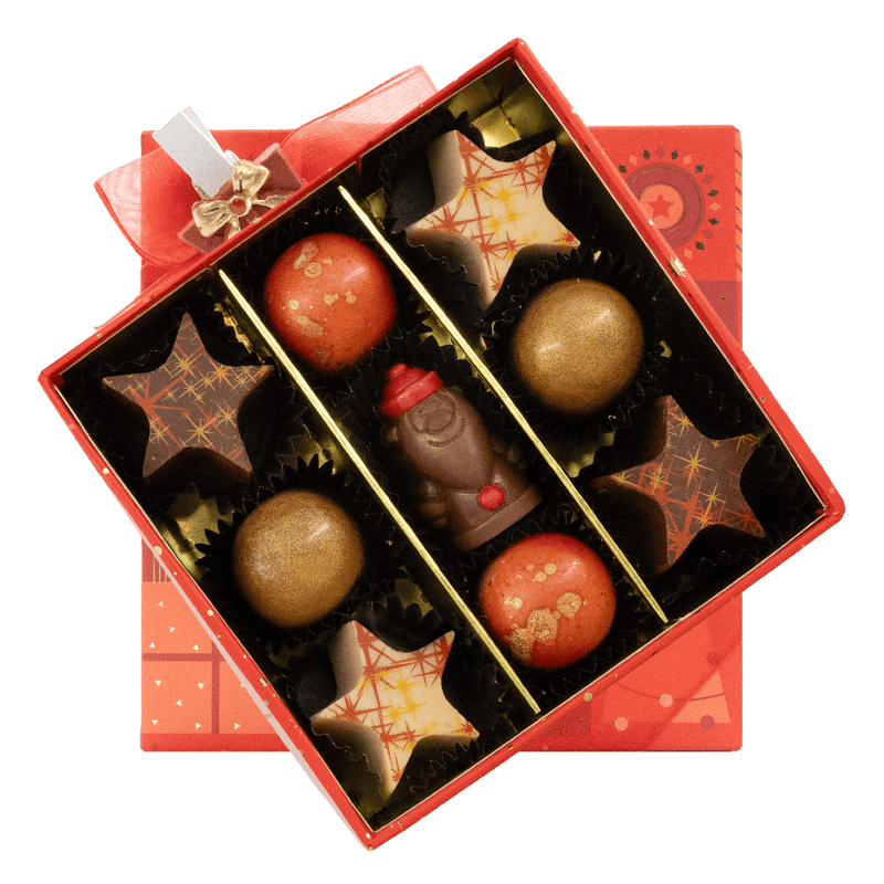 Teilen Sie die Weihnachtsfreude mit unserer Ho-Ho-Ho-Schokoladenbox, gefüllt mit 9 handgefertigten belgischen Pralinen (135g). Ein festliches Sortiment, das mit ethischem Kakao und handwerklicher Leidenschaft in Brüssel hergestellt wird.