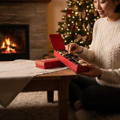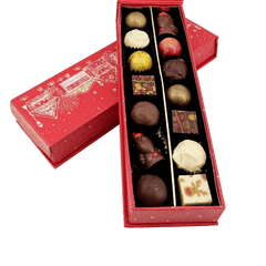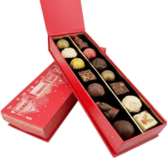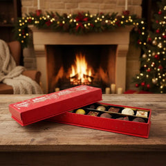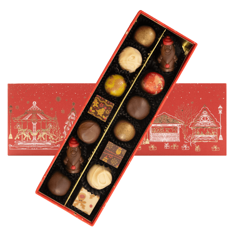 Feiern Sie den Zauber von Weihnachten mit unserer Christmas Village Box, einer 225 g schweren Auswahl von 14 handgefertigten belgischen Pralinen und Trüffeln. Ein köstliches, weihnachtliches Geschenk, das mit ethischem Kakao und reiner Kunstfertigkeit hergestellt wird.
