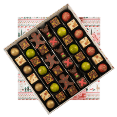Step into the magic of our Christmas winter wonderland box with 40 handcrafted Belgian pralines (590g). A festive, elegant selection of bean-to-bar creations, perfect for gifting and celebrating the season in true Belgian chocolate style. ☃️