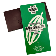 Genießen Sie unsere 70%ige Zartbitterschokolade aus Okapi, Mambasa im Kongo, die unter ethischen Gesichtspunkten von lokalen Bauern bezogen wird.