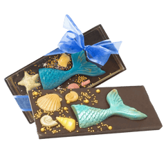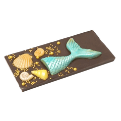 Entdecken Sie unsere 125g dunkle Schokoladentafel mit einem verspielten Meerjungfrauen-Design. Handgefertigte belgische Schokolade, reich an Geschmack und perfekt zum Verschenken oder für saisonale Leckereien.