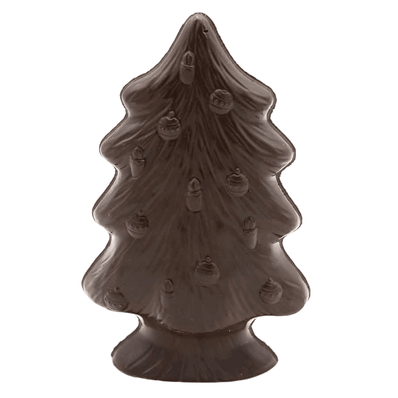 Entdecken Sie unseren handgefertigten 170-g-Weihnachtsbaum aus Zartbitterschokolade, der in Brüssel aus erstklassigem, ethisch erzeugtem Kakao hergestellt wird. Ein festliches, elegantes Geschenk, perfekt für Weihnachtsfeiern, Firmengeschenke und Weihnachtsstrümpfe.