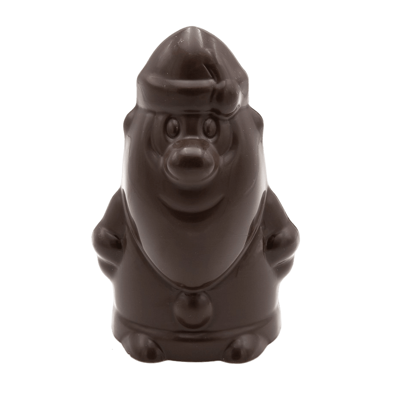 Genießen Sie Santa Claus, eine 150g handgefertigte belgische Zartbitterschokolade aus Brüssel, hergestellt mit Kakaobohnen von den Philippinen. Eine charmante, festliche Leckerei, perfekt für die Weihnachtszeit.