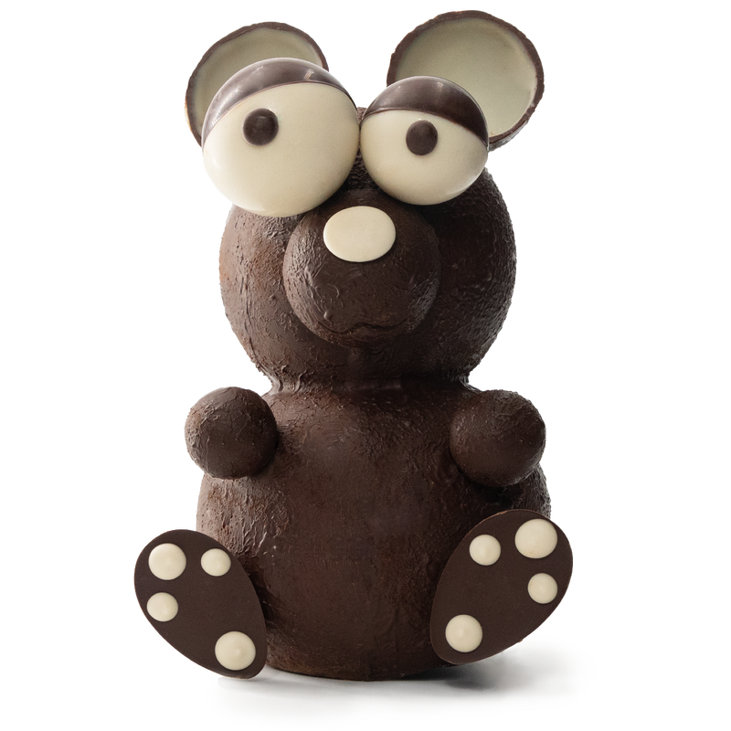 Entdecken Sie unseren 3D-Bären aus Zartbitterschokolade, der in Brüssel aus ethischem Kakao handgefertigt wird. Eine einzigartige handwerkliche Kreation, perfekt als festliches Geschenk oder Gourmet-Genuss.
