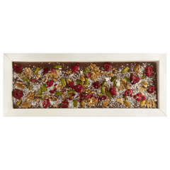 Fantasie-Milchschokoladentafel 375 g mit Walnuss-, Pistazien-, Himbeer- und Kokosnussstückchen