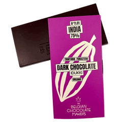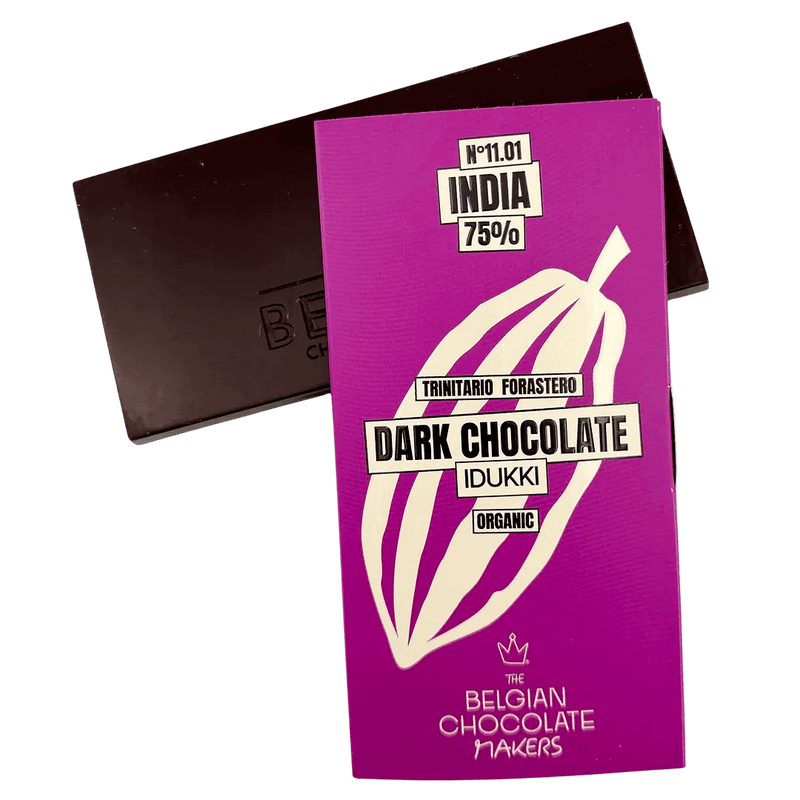 Genießen Sie unsere 75%ige Zartbitterschokolade aus Edelkakao aus Idukki, Kerala, Indien. Eine nachhaltige Herkunft verwurzelt in Kleinbauernhöfen.