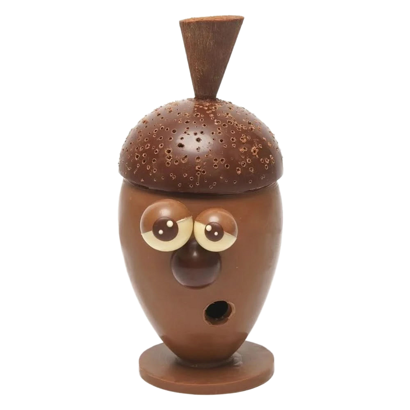 Entdecken Sie unsere Eichel aus Vollmilchschokolade 440g, handgefertigt aus belgischer Schokolade. Eine skurrile Gourmet-Figur, perfekt für den Herbst Geschenk oder verwöhnende Leckereien.