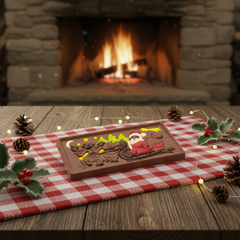 Genießen Sie den Zauber der Weihnacht mit unserem Weihnachtsmann auf einem Schlitten aus Milchschokolade. Handgefertigt in Belgien aus reinem Kakao für eine festliche Gourmet-Leckerei.