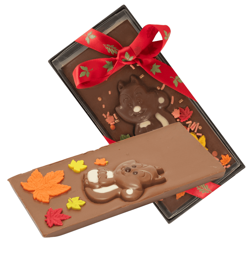 Entdecken Sie unseren Eichhörnchen-Riegel aus Vollmilchschokolade, 125 g, handgefertigt aus belgischer Schokolade. Eine spielerische Gourmet-Leckerei, perfekt zum Verschenken oder Genießen.
