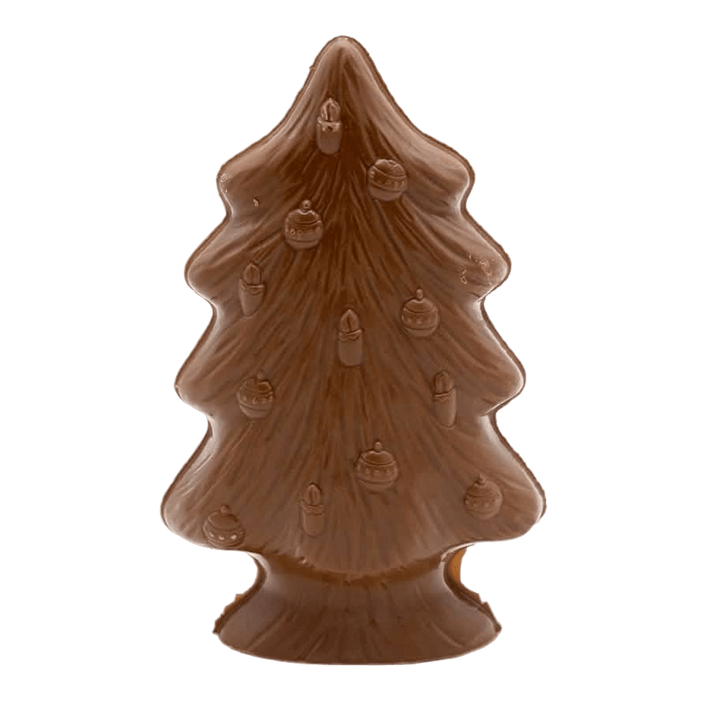 Entdecken Sie unseren handgefertigten 170-g-Weihnachtsbaum aus Milchschokolade, der in Brüssel aus hochwertigem, ethisch einwandfreiem Kakao hergestellt wird. Ein festliches, elegantes Geschenk, perfekt für Weihnachtsfeiern, Firmengeschenke und Weihnachtsstrümpfe.