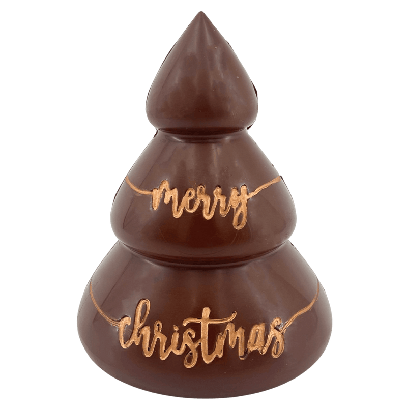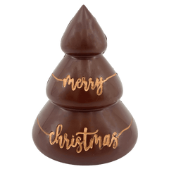 Genießen Sie unsere zarte belgische Milchschokolade "Frohe Weihnachten" Baum (280g) schön verpackt und bereit, festliche Freude zu teilen, perfekt als Geschenk oder Kernstück dieser Saison