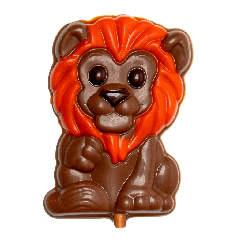 Vollmilchschokoladen-Lolli mit Orangenmähne und Löwenlutscher 25g