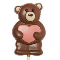 Vollmilchschokolade rosa Herz-Teddybär-Lutscher 20g