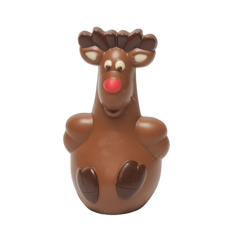 Genießen Sie Rudolph 80 g Milchschokolade, handgefertigt in Brüssel mit sanftem haitianischem Kakao und cremiger Milch für einen festlichen und genussvollen Genuss.