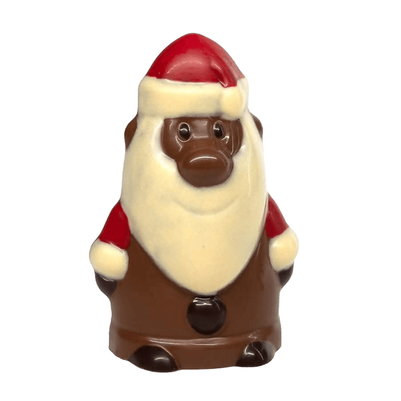 Genießen Sie unseren handgefertigten 200g-Schokoladen-Weihnachtsmann, der in Brüssel aus feinstem Kakao hergestellt wird, für einen festlichen und köstlichen Weihnachtsgenuss.