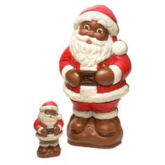 Feiern Sie die Feiertage mit dem Weihnachtsmann aus handgefertigter belgischer Milchschokolade aus Brüssel, erhältlich in der kleinen und in der großen 3,2 kg Version, hergestellt mit Kakaobohnen aus Haiti. Ein festlicher Genuss für jeden Schokoladenliebhaber.