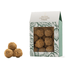 Verwöhnen Sie sich mit unserem 160-g-Beutel belgischer Schokoladentrüffel mit Spekulatius. Handgefertigt in Brüssel, kombiniert reichen Kakao mit gewürzten Keks Aromen für einen Gourmet-Genuss.