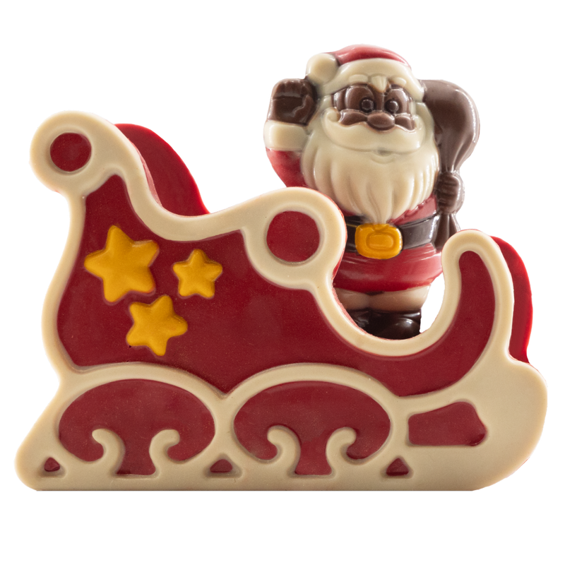 Festliche weiße Schokolade Weihnachtsmann im Schlitten 180g