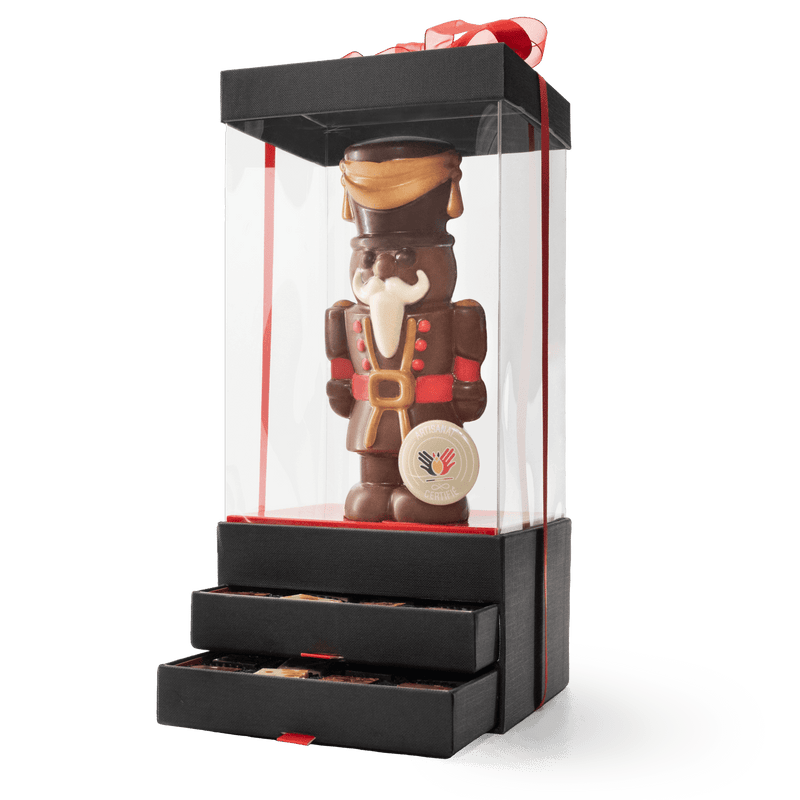 Entdecken Sie unseren handgefertigten Skyline Nussknacker mit 700 g feiner Pralinen, hergestellt in Brüssel. Ein festliches Gourmet-Mittelstück zum Verschenken oder Teilen.