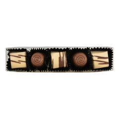 Stange mit weißen Pralinen (Ganache, Karamell) & Milchpralinen (Praliné)
