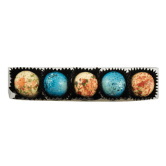 Stange mit 5 farbigen Pralinen (Mango, gesalzenes Karamell)