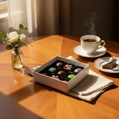 Tauchen Sie ein in den Sommer mit unserer Tropischen Meer Schachtel mit gemischten belgischen Pralinen (135g), handgefertigt in Brüssel aus ethischer Bohne-zu-Bar Schokolade. Eine sonnige Auswahl, inspiriert von den Farben und Aromen des Meeres.