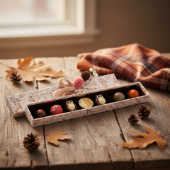 Entdecken Sie unsere warmen Schattenpralinen 105g, handgefertigte belgische Pralinen mit reichen saisonalen Aromen. Ein Gourmet-Geschenk-Box, perfekt für die gemeinsame Nutzung oder Verwöhnung.