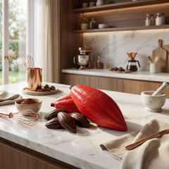 Kakaoschote handgefertigt mit weißer Schokolade 35%.