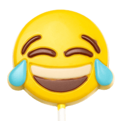 Handgefertigter weißer Schokoladenlutscher in Form eines fröhlichen Emojis, hergestellt mit reichhaltiger Kakaobutter, eine lustige, cremige Leckerei, perfekt zum Verschenken, für Partys oder um jemandem den Tag zu versüßen.