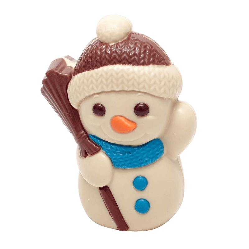 Freuen Sie sich auf unseren handgefertigten Schneemann aus cremiger weißer Schokolade, der in Brüssel mit reiner Kakaobutter hergestellt wird. Eine festliche 150 g Leckerei perfekt zum Verschenken oder Genießen.