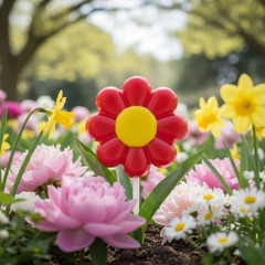 Lutscher aus handwerklich hergestellter Schokolade in Form einer roten Blume mit Akzenten aus weißer Schokolade, ein charmanter Gourmetgenuss und ein aufmerksames Geschenk für Schokoladenliebhaber