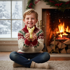 Genießen Sie unser handgefertigtes Rentier in cremiger weißer Schokolade, hergestellt in Brüssel mit reiner Kakaobutter. Eine festliche 150 g Leckerei, perfekt zum Verschenken oder Teilen.